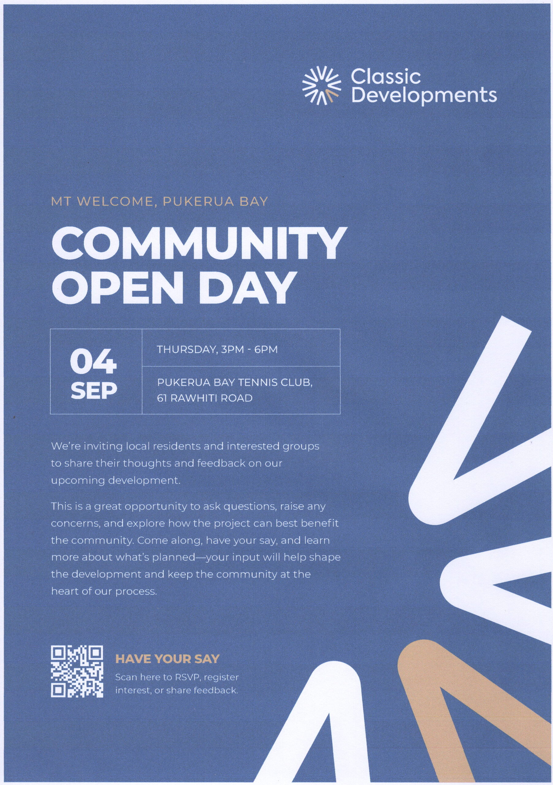 Advice has come from Pukerua Holdings Ltd that a notice board at Muri Rd will shortly be erected by the Civil works contractor, Bryce O’Sullivan Contracting, as the new road entrance starts to open and civil works (drainage, roading etc) get underway.