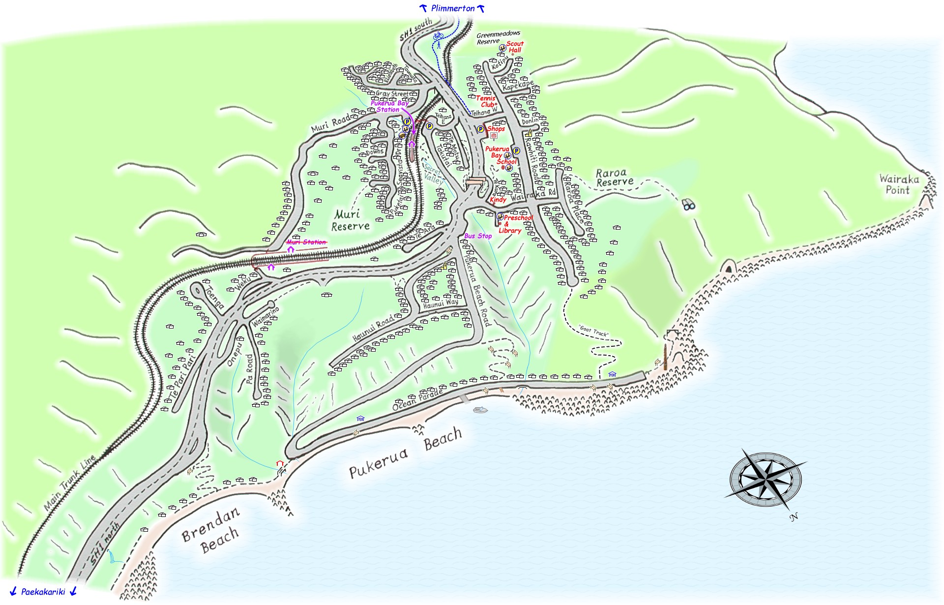 PukeruaBayMapThe map of Pukerua Bay and amenities contains amenities such as car parks, playgrounds, public toilets, location of NZ Post mailboxes, walkways, etc.
